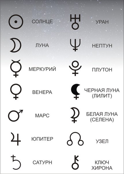 В ФОРМУЛЕ ДУШИ используются 10 планет. Эти планеты и их значение необходимо выучить. К планетам относитесь с уважением, выполняя рисунки значков, старайтесь изображать их аккуратно.